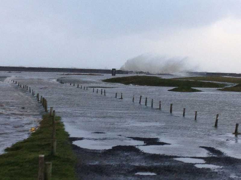 There's quite a big swell now though and the sea was breaking over the top of the sea wall all along the golf course again this