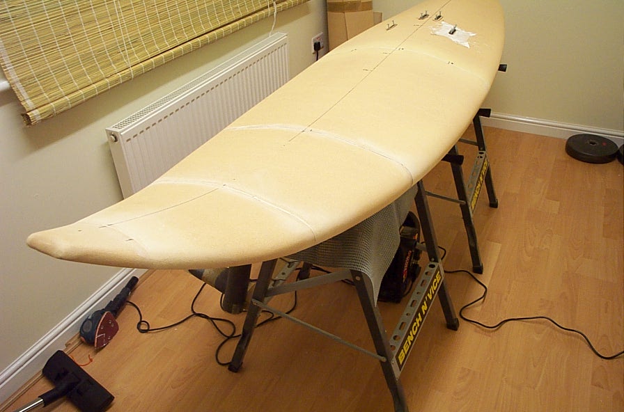 Found some pics half way through making the board - just starting to put the foot strap plugs in...
