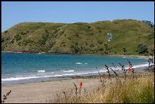 up near the top of the coromandel is opito bay. very remote but very pretty beaches and i had a short but fun session there