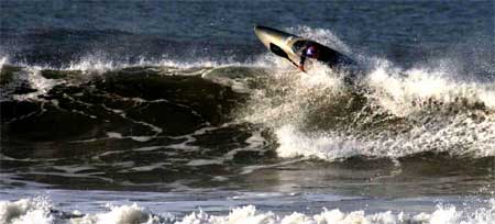 It is unique, being a silver ‘marble effect’ on the deck, and white hull. It is of kevlar carbon construction, has three fins and also a 10-12cm gash (damage) on the rear deck. It is pretty small, being 7’ 6” in length, and is similar in shape to a kind of ‘shoe’ or ‘clog.’