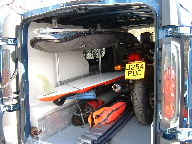 My d-i-y is pretty non-existant. I thought 'Two-be-one' was an African dictator. So I've got the professionals to kit out the back, and it turns out they're the same folks who kit out Robby Swift's wheels! It's been lined with GRP coated ply to make the back 100% waterproof, and the floor has a non-slip coating. There's a ramp to load the motorbike in on the offside (which has yet to be gripped), and the lashing points are yet to be finished. Once the bike's in, there are fold-down brackets on the nearside to hold the boards. All in in, I'm pretty damn pleased. Once the fitting out in the back's done I'll post a few pix.