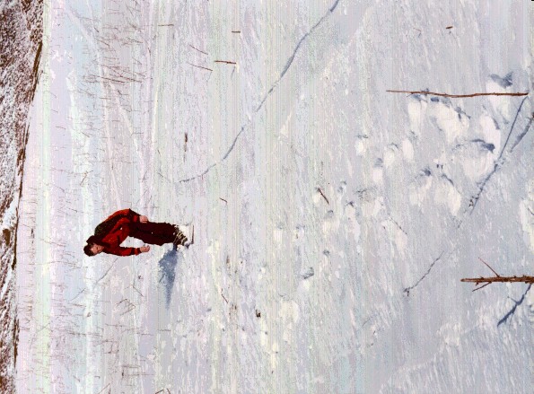 through gullies that formed a kind of wide natural half-pipe which meant I was carving from rail to rail on big banks of powder!!!!