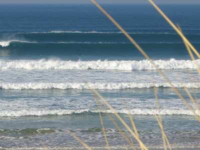 photo from Gwithian, you can just make out two guys paddling up the face.